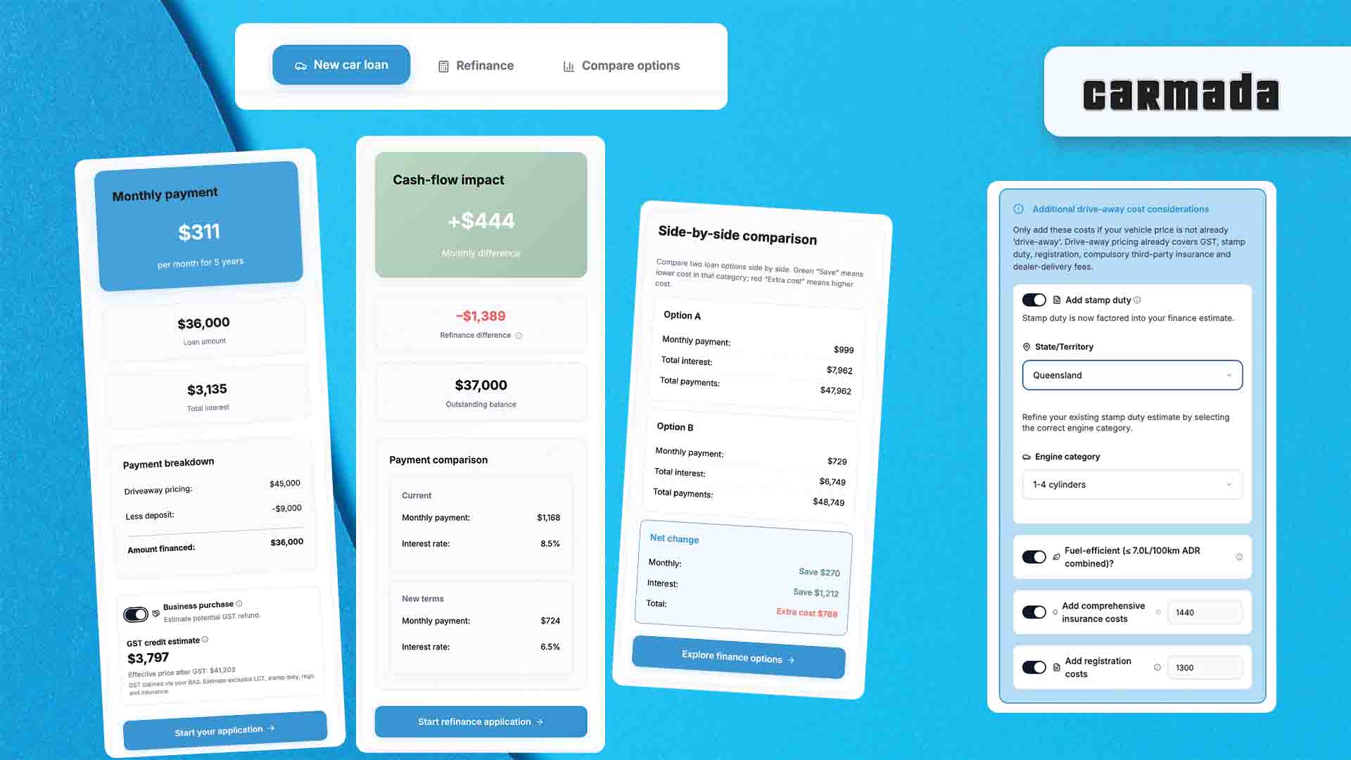 Instantly cut through car-buying confusion with Carmada’s Three-in-One Calculator—see hidden costs, spot savings, and confidently choose your best deal in seconds.